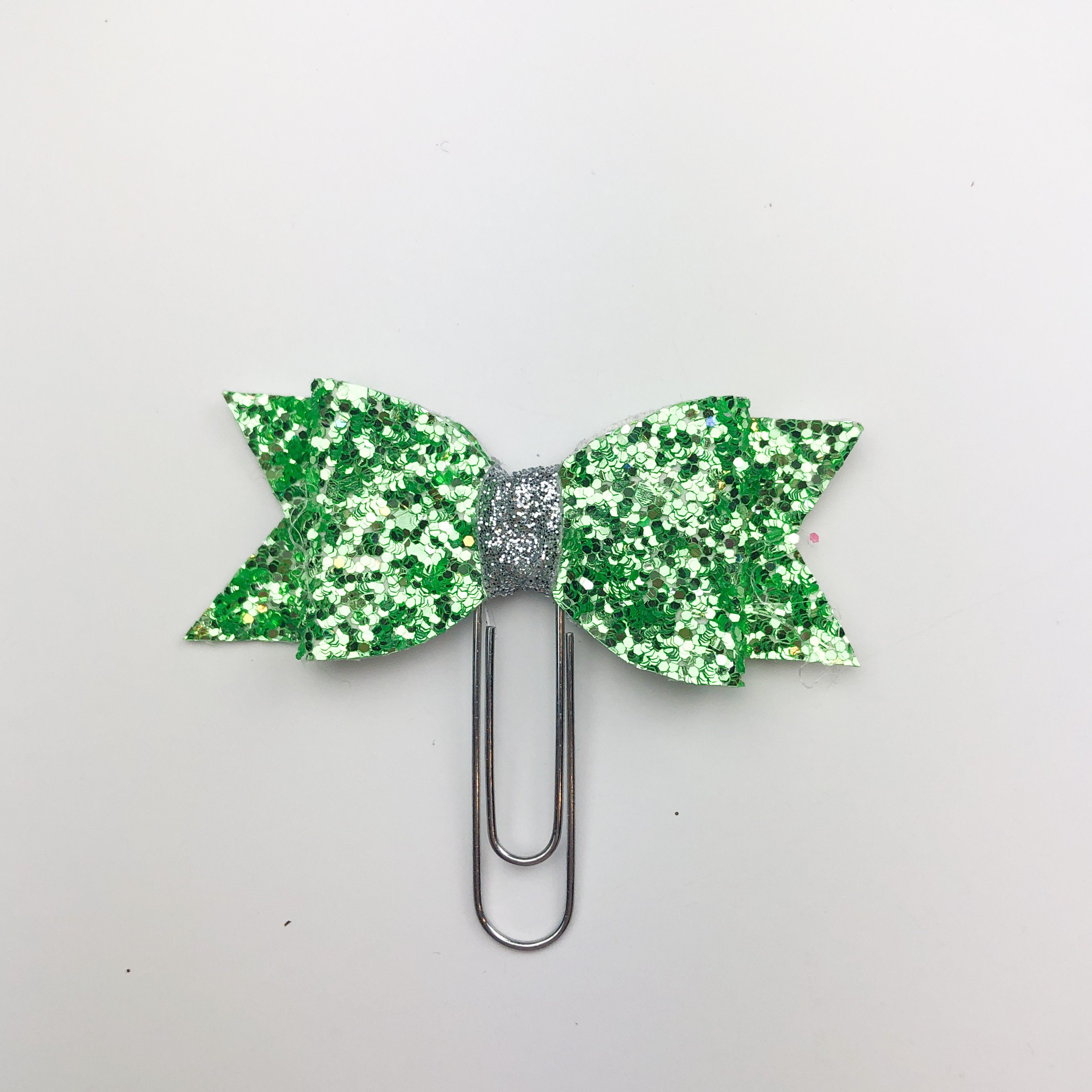 Glitter Bow Light Green With Silver Clip With Silver Center Etsy